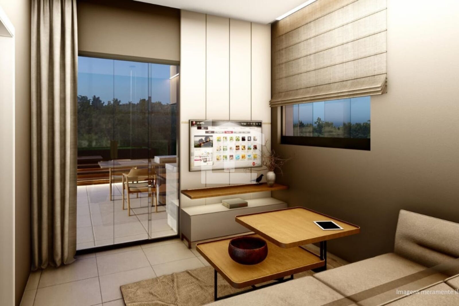 - Sala ampla para dois ambientes, integrada com Cozinha;