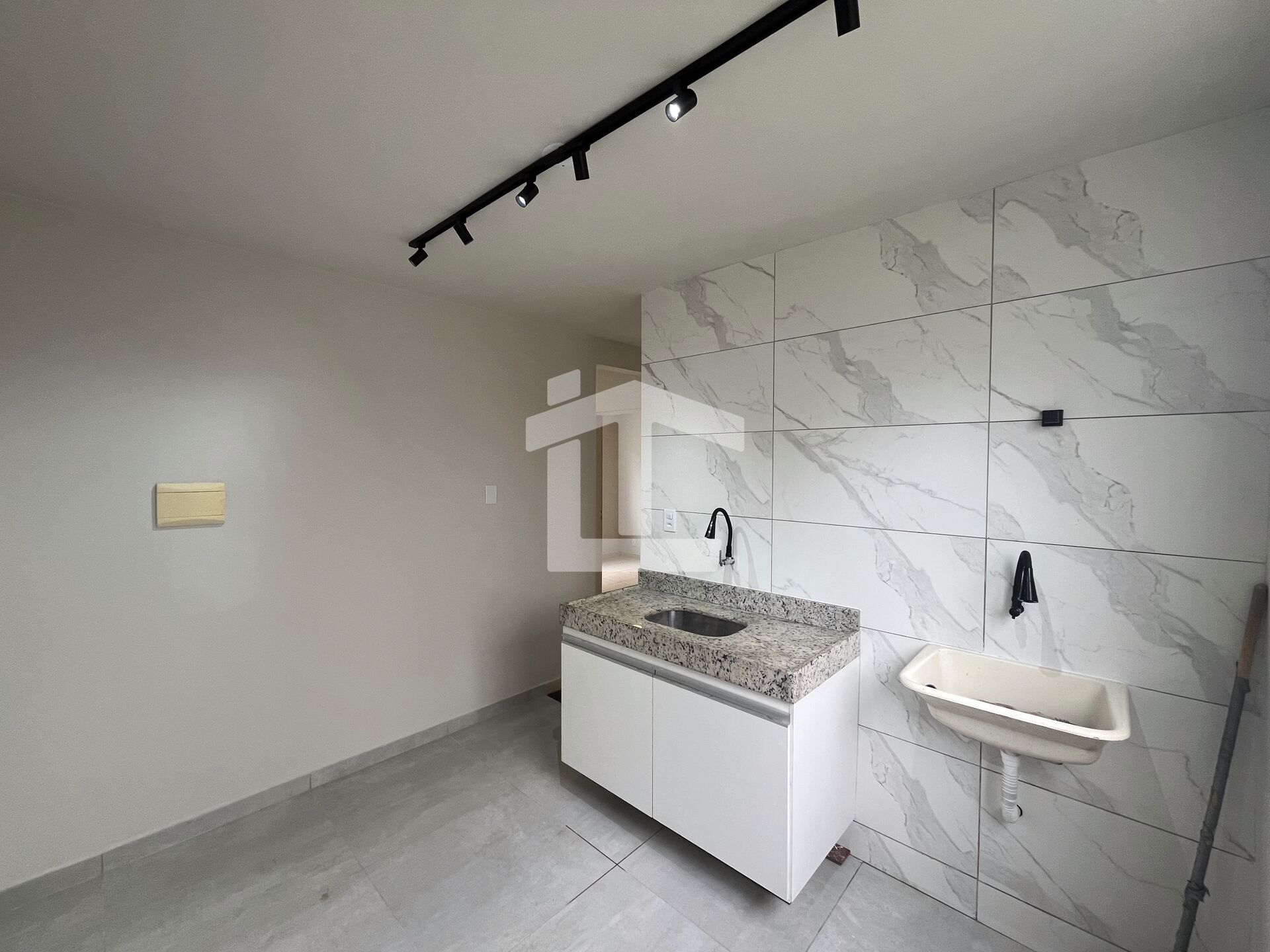 Piso elegante em porcelanato e granito, cozinha funcional ,