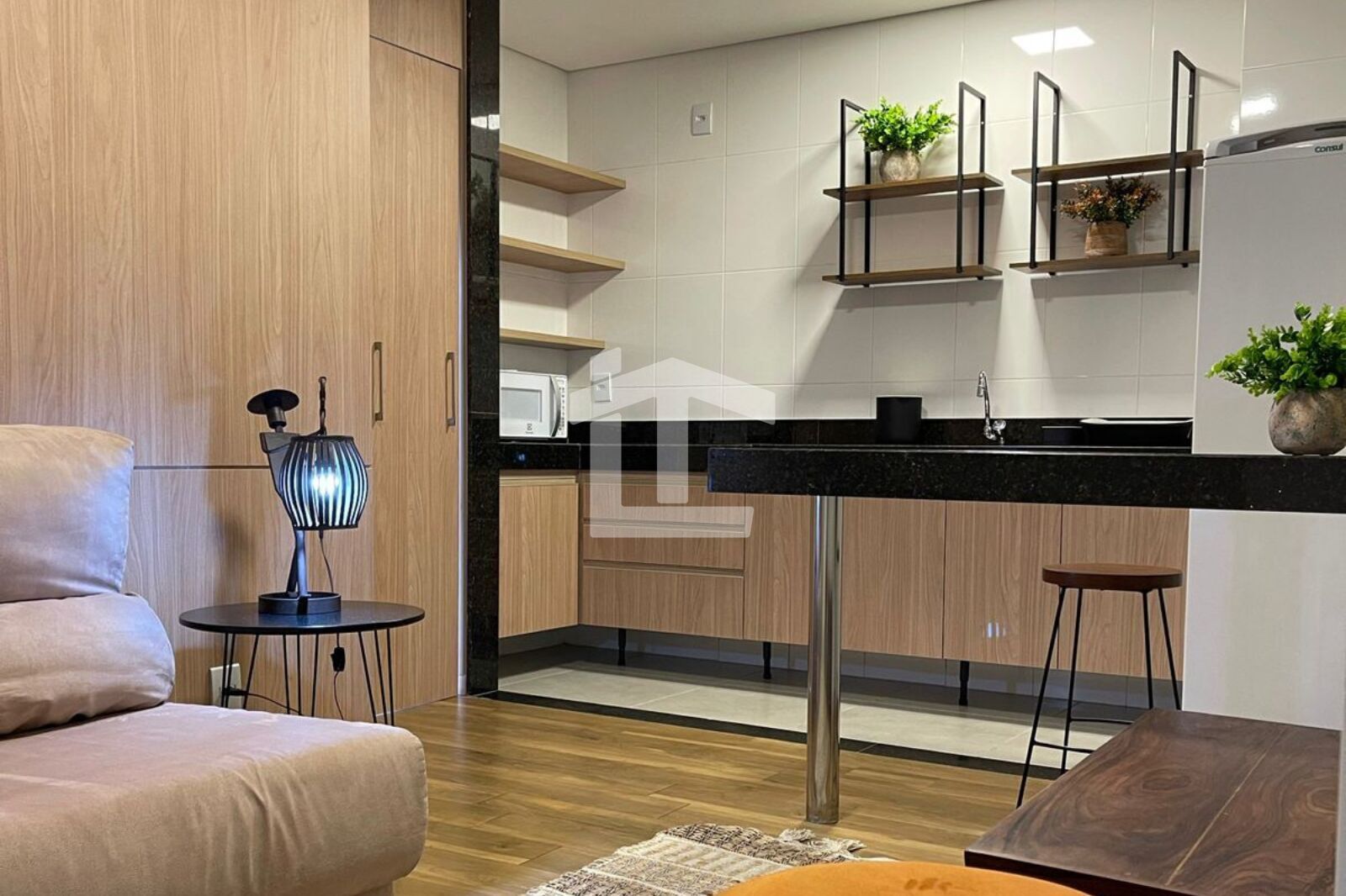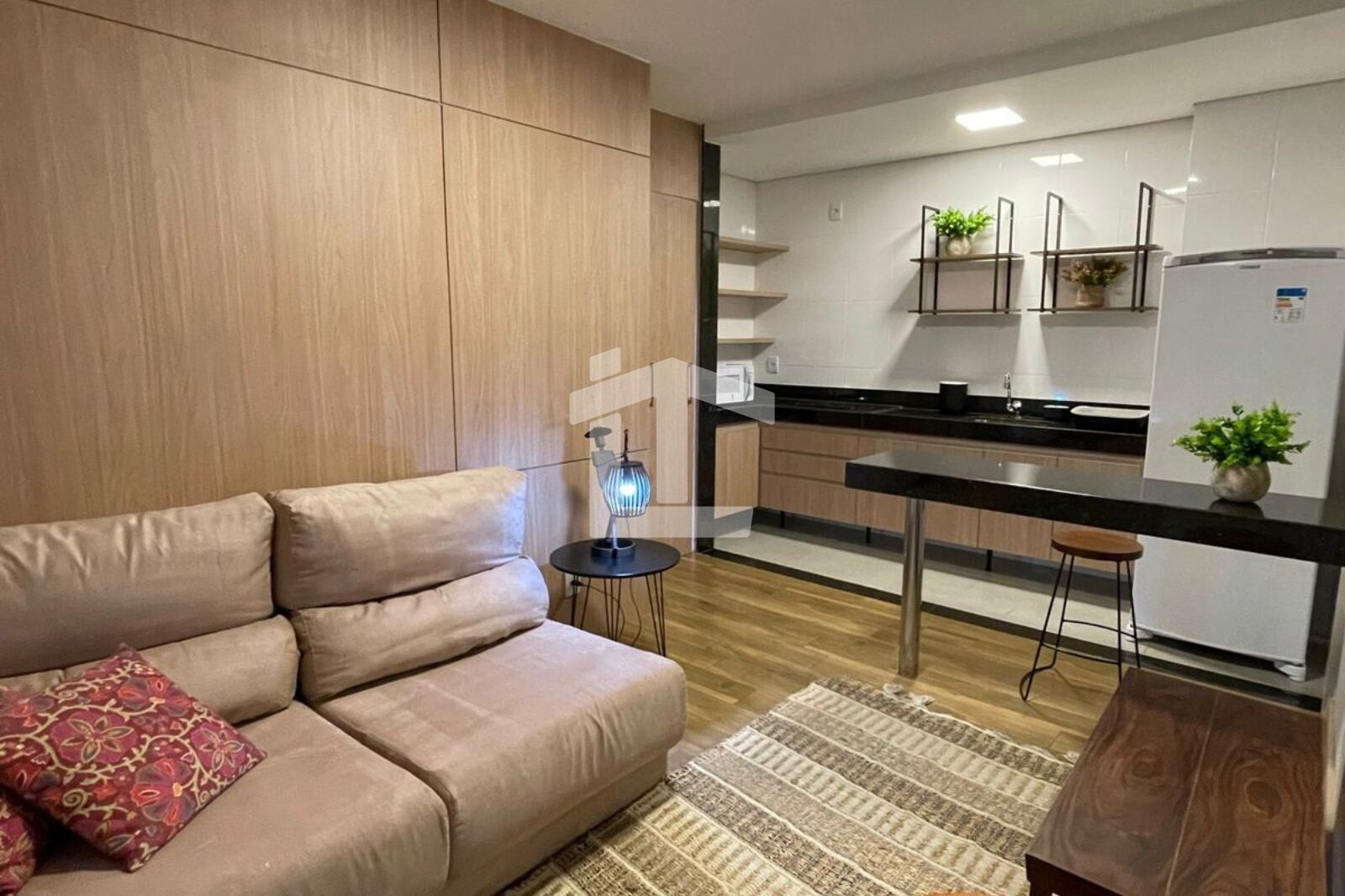 - Imóvel mobiliado, com 1 quarto, sala de estar integrada à cozinha, banheiro social, ar condicionado e 1 vaga de garagem.