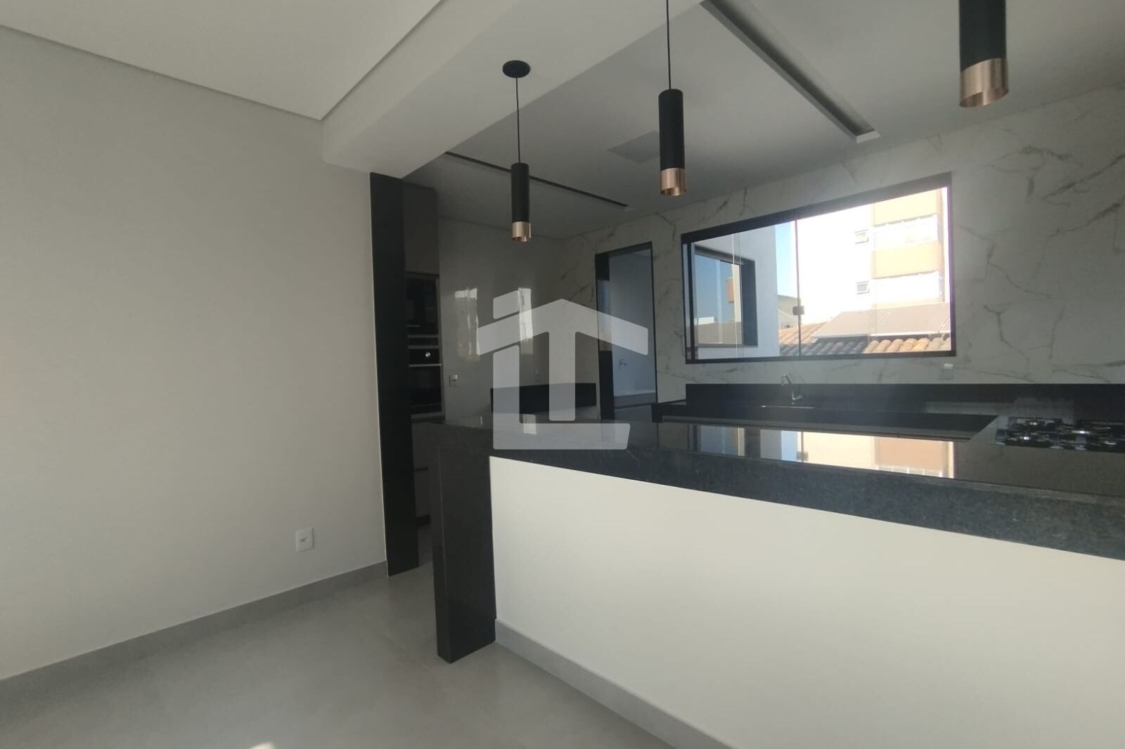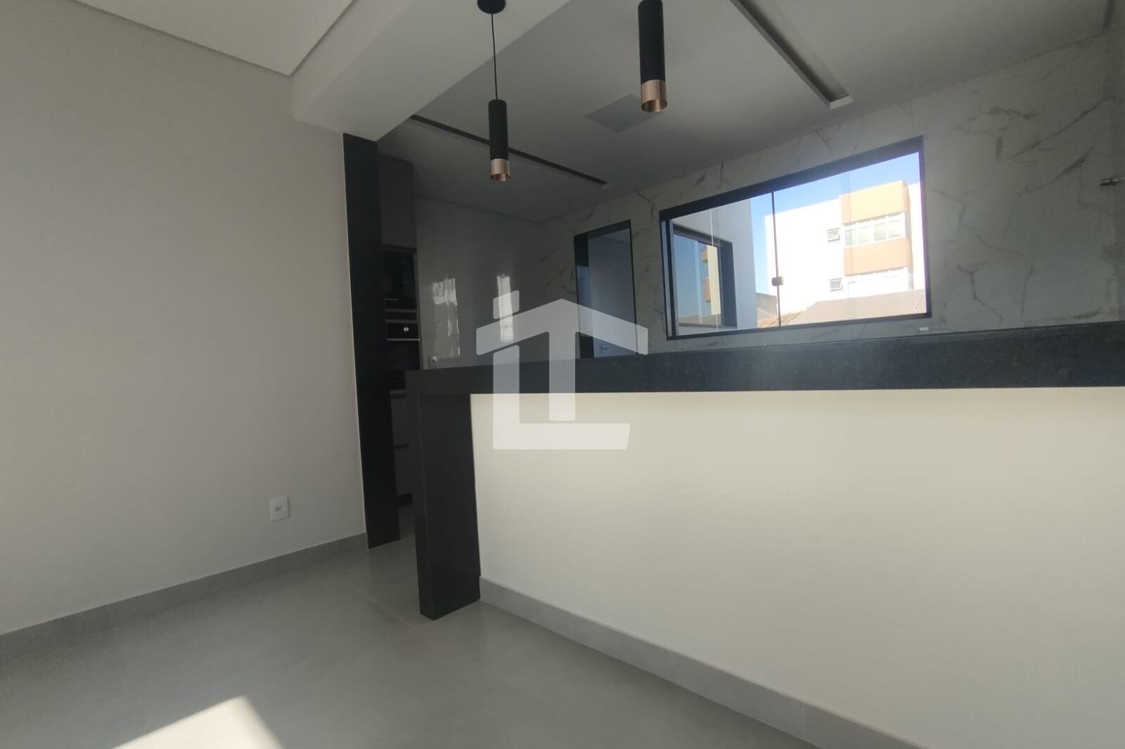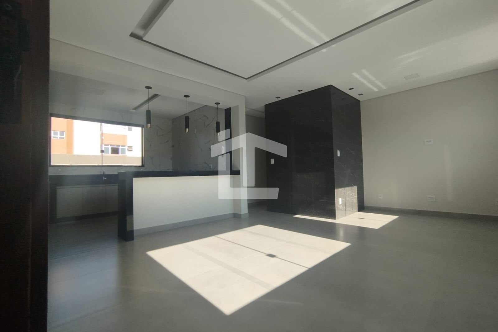 - Sala ampla para dois ambientes integrada à cozinha;