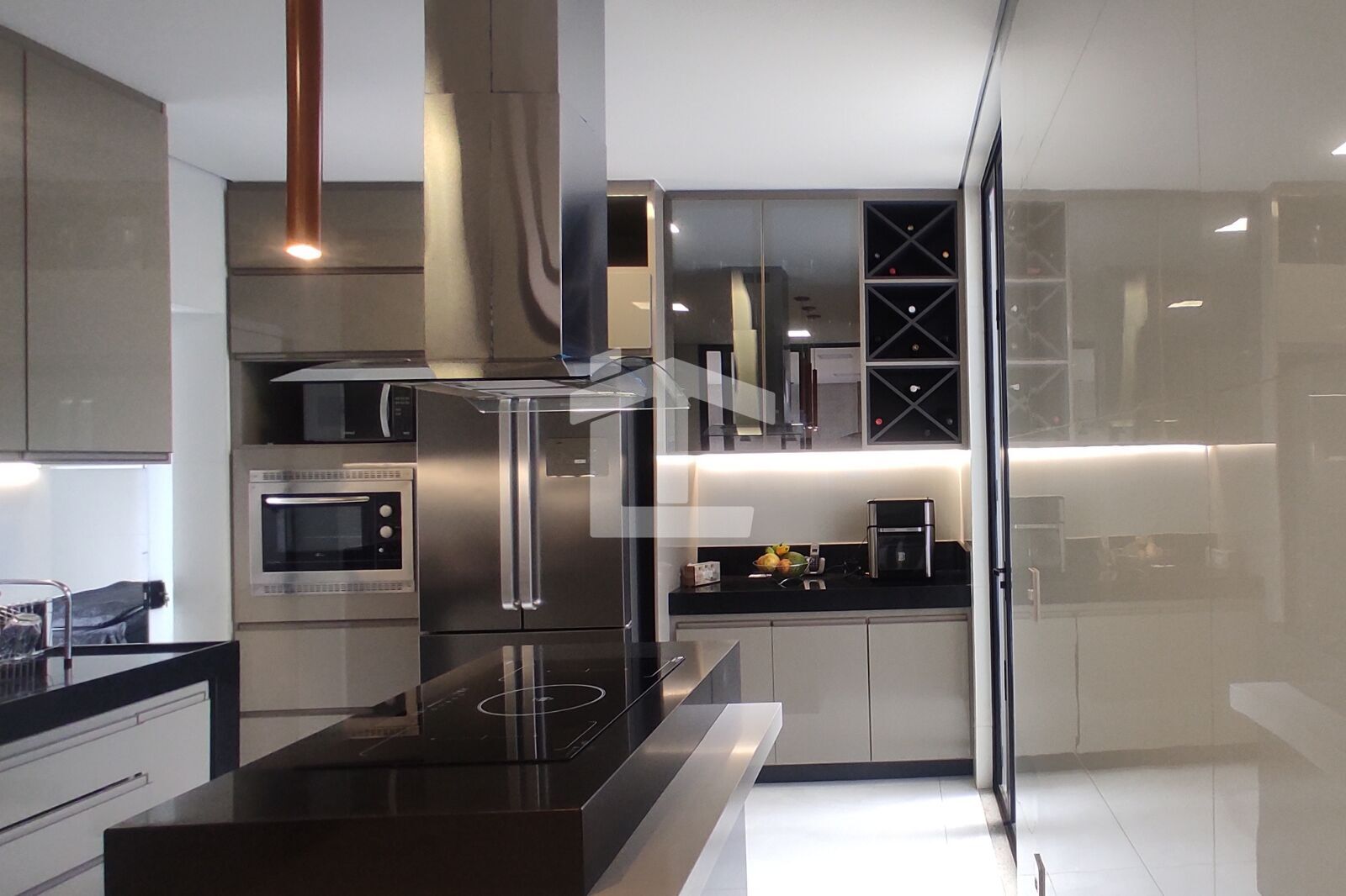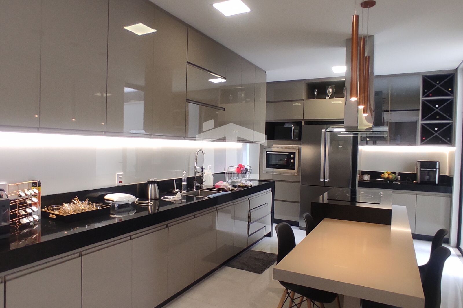 - Cozinha com ilha e armários planejados → design + funcionalidade
