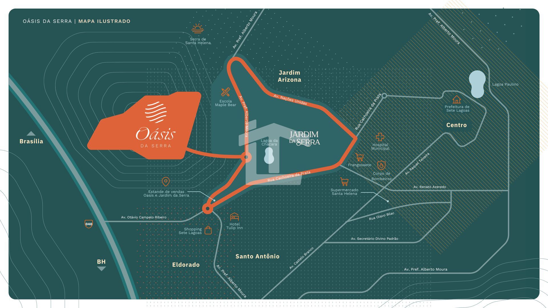 O seu novo lar espera por você no ponto mais encantador de Sete Lagoas, aos pés da imponente Serra Santa Helena. O Condomínio Oásis da Serra está em construção, projetado para oferecer o equilíbrio ideal entre tranquilidade, lazer e qualidade de vida.